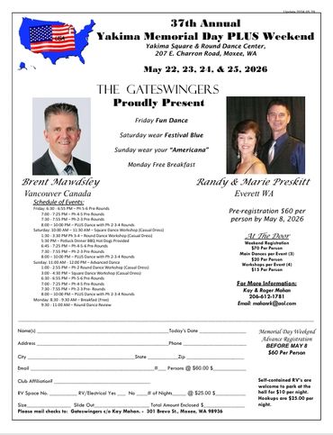 Below you’ll find flyers for all of our upcoming events. As you scroll down the page, you’ll first see our Two-Day Events, followed by our Single-Day Dances. Just below those, you’ll find a section highlighting Events at Other Clubs.
